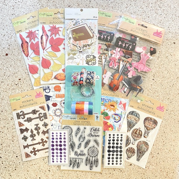 Stickers, Stickers, Stickers! Assorted stickers for arts & crafts, scrap booking, journaling and more. Purchased more items than needed so you are in luck. You can get all 20 items for a low low price!