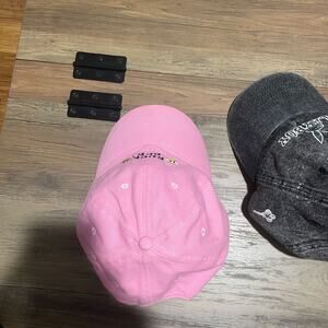 This pink cotton baseball cap by Stickie Bandits features bold embroidery with a unique design. Comfortable and stylish for casual wear.