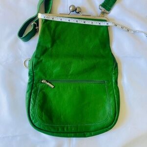 Sticks and Stones Amsterdam Green Leather Red Interior Crossbody Bag Multi Clips