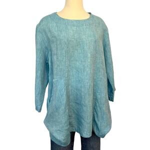 Stijfselkissie Lagenlook Linen Tunic Blouse Light Blue | Small Oversized