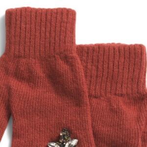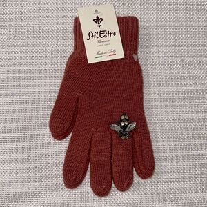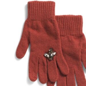 StilEstro Rust Cashmere Wool Blend Fine Knit Jeweled Ring Finger Detail Gloves