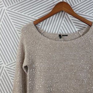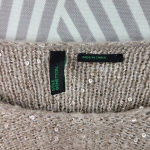 Stile Benetton Sweater size Small Lightweight Gold Sequin Embellished tan Mohair