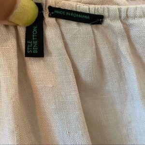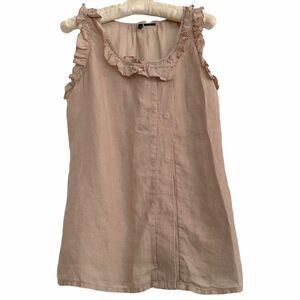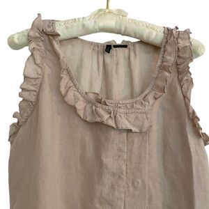 Stile Benetton Linen Ruffle Neck & Armhole Top XS
