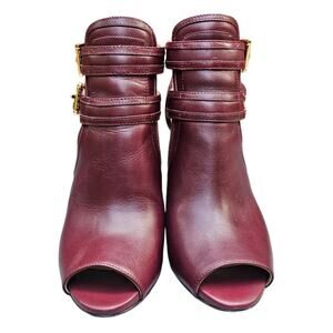 Stiletto Ankle Bootie MMK Blaze Size 7 OpenToe Buckle High Heel Burgundy Leather