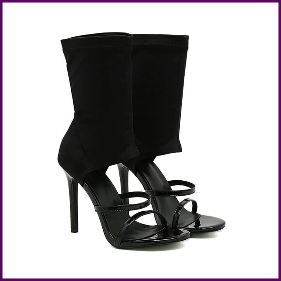 These stylish high-top gladiator sandals combine a sexy stiletto heel with comfortable, stretchy fabric for a versatile and eye-catching look. Perfect for elevating everything from casual outfits to special occasion dresses.