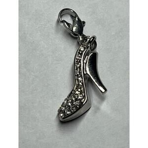 Stiletto High Heel Pump Shoe Charm Bracelet. Necklace.Faux Diamond Silver tone