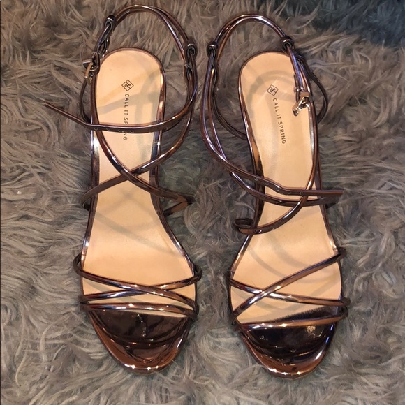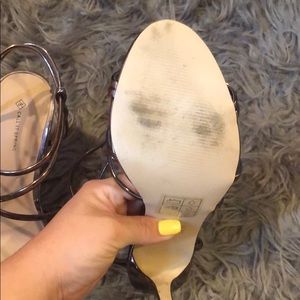 These are bronze shiny stilettos that wrap around the foot. Only worn once! They were a little too big but I loved them so much so I bought them anyways. Now they’re too big so it looks funny when I walk.