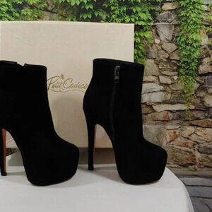 New With Box pair of the stiletto ankle booties genuine suede by Petit Cadeau