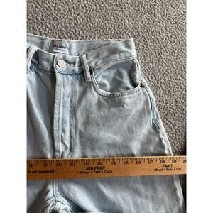 light wash denim pants high rise button fly pockets cotton skater casual pastel 90s 80s y2k womens 0 2 xs relaxed loose 24 x 24 cropped ankle capri 00