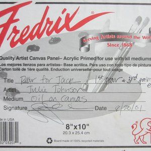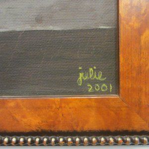 American artist Julie Johnson created this gorgeous art. Title: Pear For Jack, Medium is oil on canvas, and the signature is on lower end along with creation date 2001, and on the verso in hand writing.