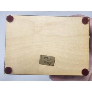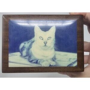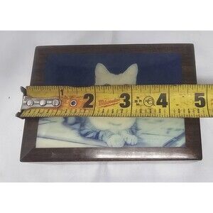 Still Life Tabby Cat Lacquerware Wooden Hinged Trinket Jewelry Box Lined Italy
