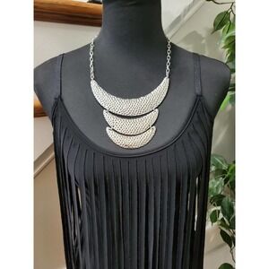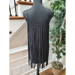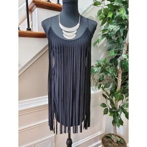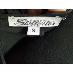Stilletto's Black Polyester Round Neck Strappy Ruffle Knee Length Party Dress S