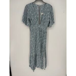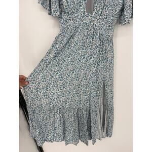 Stillwater Dress Britton Midi Flutter Sleeve Slit Flower Blue White Sz Small