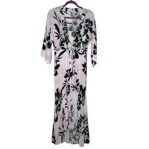 Stillwater Floral Asymmetric High Low V-Neck Front Tie Dress