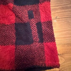 Warm fleece vest with a classic red and black plaid design. Perfect for layering.