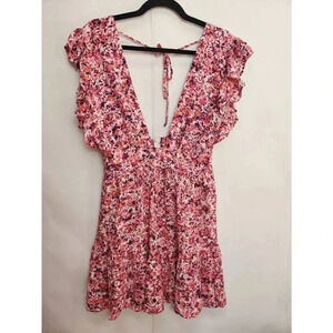 Stillwater The Jessie Mini Dress Floral Pink Purple Deep Plunge Size Medium.