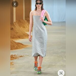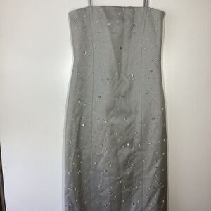 Stine Goya Aly Crystal Clusters Rhinestone Sleeveless Gray Midi Dress XXS