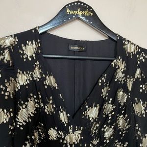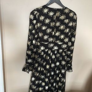 Stine Goya Black Gold Metallic William 602 Lurex Dots Silk Chiffon Midi Dress