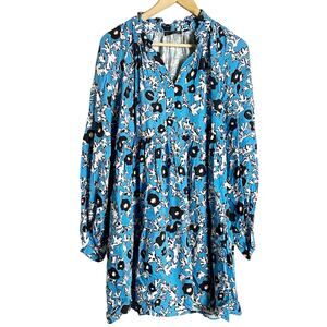 Stine Goya Blue Floral Printed Jasmine Long Sleeve Shift Dress Size Small