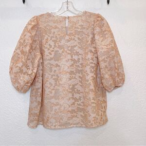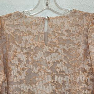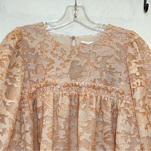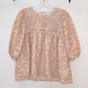Stine Goya Emmeline Organza Embroidered Puff Sleeve Babydoll Boho Top in Peach/Cream size XS
