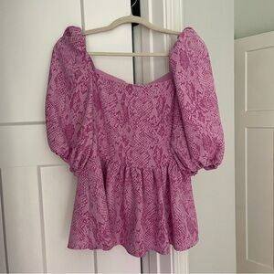 Stine Goya Irene Blouse Snakeskin Pink Puff Slevee
