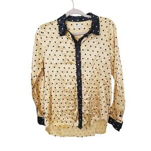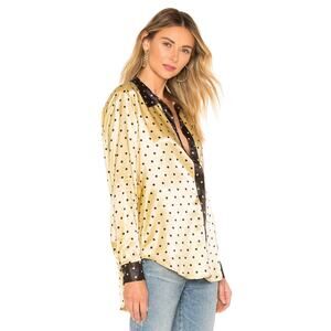 Stine Goya Maxwell Button Up Top XS Golden Black Polka Dots Statement Luxury