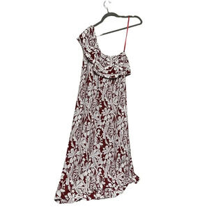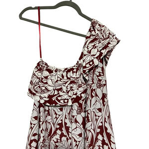Beautiful silk blend red floral one shoulder swing dress from Stine Goya.