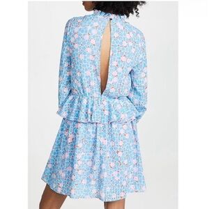 Stine Goya Women’s Christine Stardot Designer Blue Ruffle Mini Dress Open Back