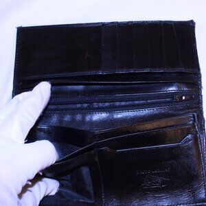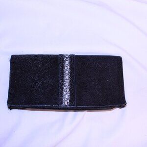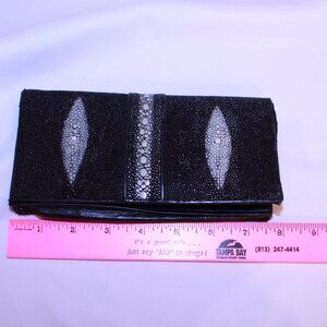 Stingray Skin Black With White Design Long Bi-Fold Flap Leather Wallet