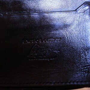 2 long slip pockets on one side with 1 gusseted bill pocket on the other