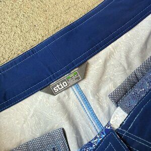 Stio CFS Board Shorts Men’s 35 Blue Abstract Print Swim Trunks Surf 18.5”