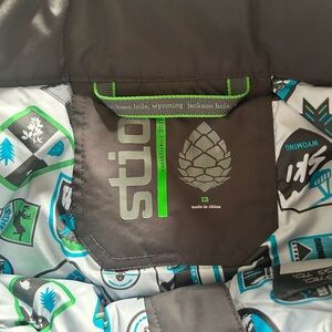 Great pair of snow pants used four days total over two seasons. Unfortunately, outgrown now. Please note the slight tear on the left knee that I have repaired. Thanks for looking!