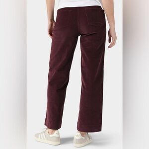 Stio cropped cords in the Rivet style; wide leg cord. Color is a rasberry called Lodge Beam. Women’s 14.