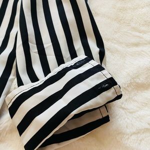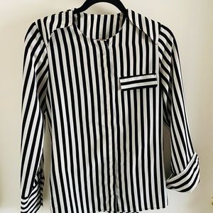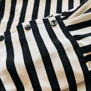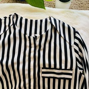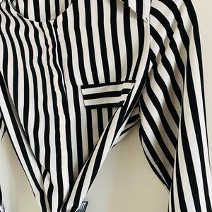 Stripe black and white long sleeve blouse Can wear it with a belt or tucked in. Cuff sleeve also has buttons Made in Turkey Size: 2 or Medium
