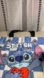 Cute tote bag featuring Stitch. Blue and white checkered design. Black handles.