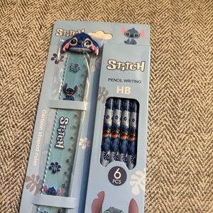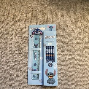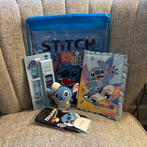 Stitch bundle includes notebook, socks, pencils, plushie keychain and bag