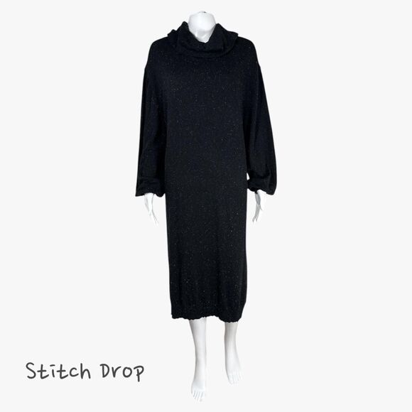 Stitch Drop Women's Oversized Lounge Sweater Dress in Black Sz XL Casual Winter