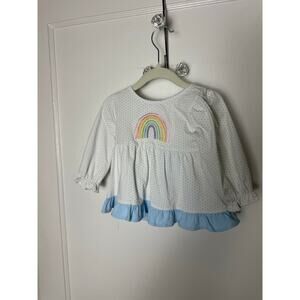 Stitch Fish 12 MOS White Bow Rainbow Embroidered Ruffle Tunic Top Long Sleeve