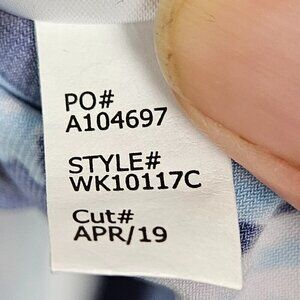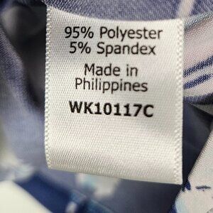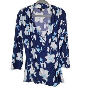 Stitch Fix 41 Hawthorn Henri Blue Floral Faux Wrap Side Gathered 3/4 Sleeve Top, size L. Style# WK10117C. Pull on, faux wrap front, stretch poly spandex material, V-neck. Excellent pre-owned condition.
