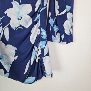 Stitch Fix 41 Hawthorn Henri Blue Floral Faux Wrap Side Gathered 3/4 Sleeve Top