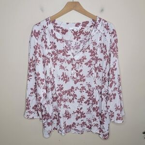 Stitch Fix Fun2Fun | White and Mauve Floral V-neck Top Blouse Plus Size 3X