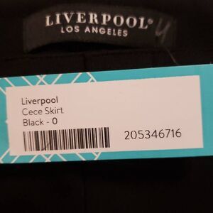 This brand new black pencil pull on skirt from Liverpool Los Angeles has functional front and back pockets and an elastic waist for comfort. There is a U on the inside label but nothing wrong with the skirt itself, please see photo.