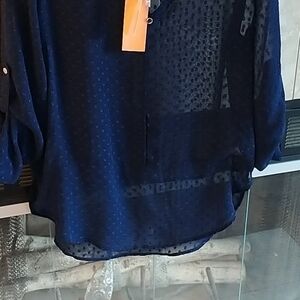 Collective Concepts, Stitch Fix Navy Damon Swiss Dot Shear Blouse XS