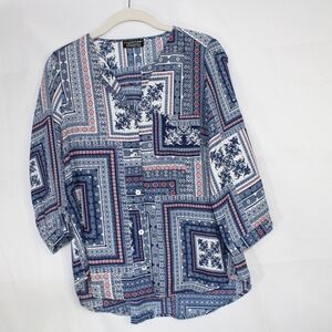 Stitch Fix Papermoon Floral Button Down Blouse Top 3/4 Sleeve Size MP.