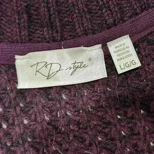 Stitch Fix RD Style Chunky Knit Open Cardigan Sweater Pockets Burgundy Size L