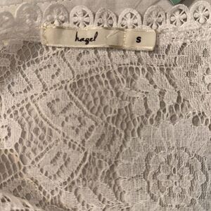 Stitch Fix S hazel White Daiana Lace Crochet Overlay Sleeves Peplum Blouse Cami