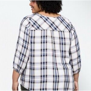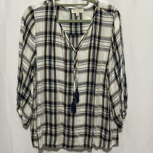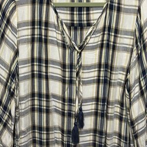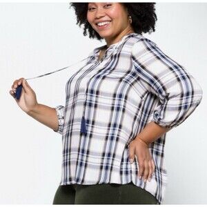 Stitch Fix Skies Are Blue Curvy Womens 1X Plaid Split Neck Top Tassel Ties Prep
