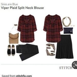 Stitch Fix Skies Are Blue Viper Plaid Split Neck Tunic Business Casual office