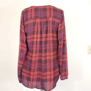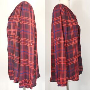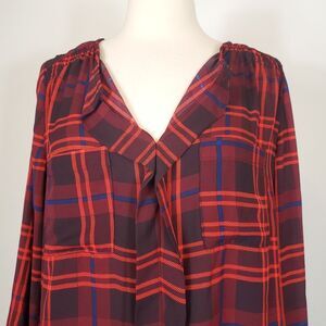 Stitch Fix Viper plaid split neck blouse pull on long sleeves shirt Burgundy