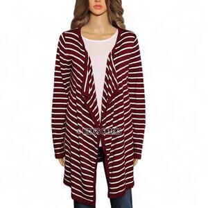 Stitch Fix Striped Waterfall Cardigan Red White Open Front Elbow Patch Size M